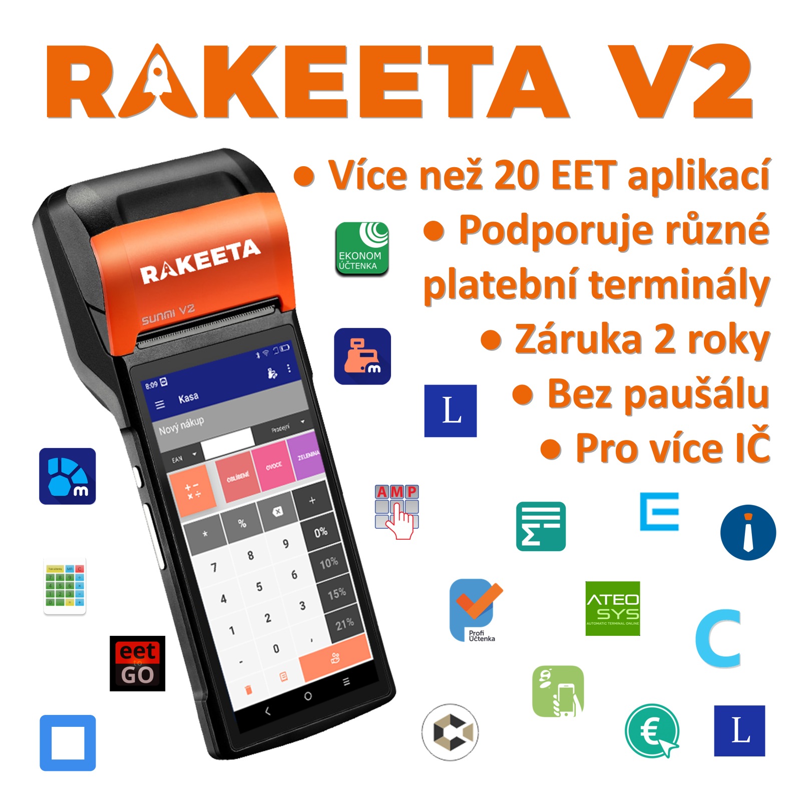 Terminály s označením RAKEETA mají před veškerou konkurencí jednu obrovskou výhodu. Nechávají na samotném uživateli, aby si vybral, který software chce na evidenci tržeb využívat.