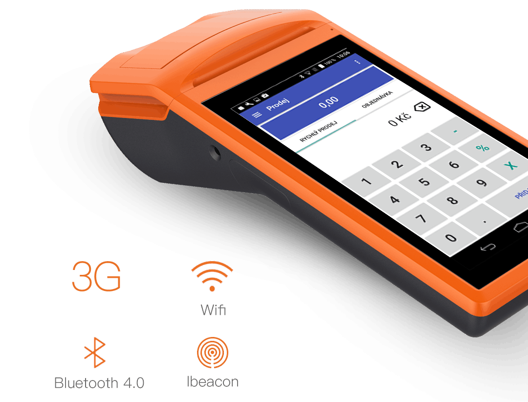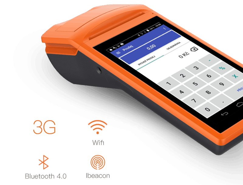 Mobilní POS terminál s operačním systémem Android, možností tisku účtenek a scannerem pro čtení kódů nabízí jednoduché ovládání, snadnou údržbu a dlouhou životnost.